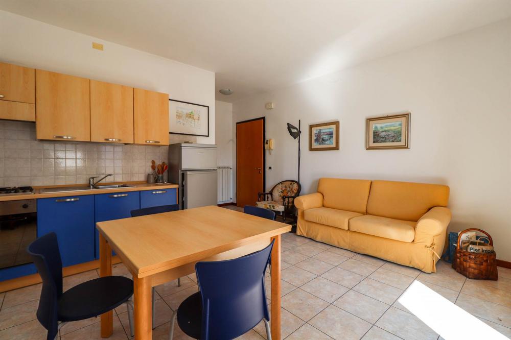 L'ingresso si apre su una piacevole zona giorno open space, dove soggiorno e cucina convivono in un ambiente unico, funzionale e ben distribuito. La luce naturale è protagonista nelle ore pomeridiane, regalando calore e vivibilità agli spazi.